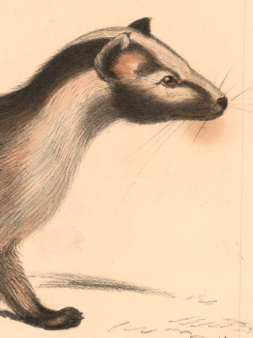 John Edward Gray of the British Museum had collaborated with Maj.-Gen. Hardwicke in producing Illustrations of Indian Zoology between 1830 and 1834. He was also the author of several major illustrated works on natural history and commissioned the best artists and printers of the day to illustrate his work. The Illustrations of Indian Zoology is his major work, dedicated to the East India Company, and with the striking plates of bird and animal life in the sub-continent drawn by Waterhouse Hawkins, the noted sporting artist.